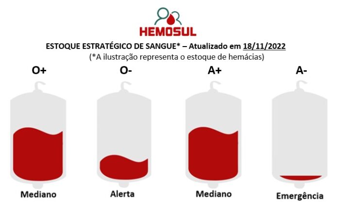 “Chegamos nessa sexta com muitos pedidos dos hospitais e pouquíssimas bolsas de sangue para atendê-los. A situação é pior para essas tipagens, mas vale ressaltar que toda doação é bem-vinda e ajuda a salvar vidas. Fazemos esse apelo para que os doadores se programem e venham até o Hemosul realizar sua solidariedade” explica a Coordenadora Geral da Rede Hemosul Marli Vavas.