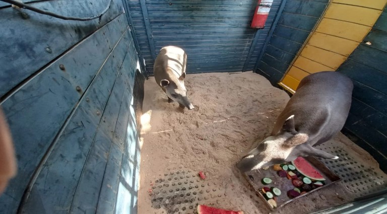 A coordenadora do CRAS, Aline Duarte, explica que as antas chegaram ao Centro de Reabilitação ainda filhotes, e que passaram por atendimento veterinário e primeiros cuidados. “Uma delas deu entrada no CRAS em janeiro de 2021 e a outra em junho de 2022, ambas encontradas às margens de rodovias no Estado”, afirma.