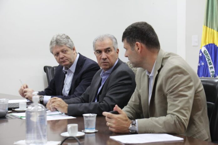 Secretário Jaime Verruck, governador Reinaldo Azambuja e Bruno Basto superintendente de Indústria (Foto: Chico Ribeiro)