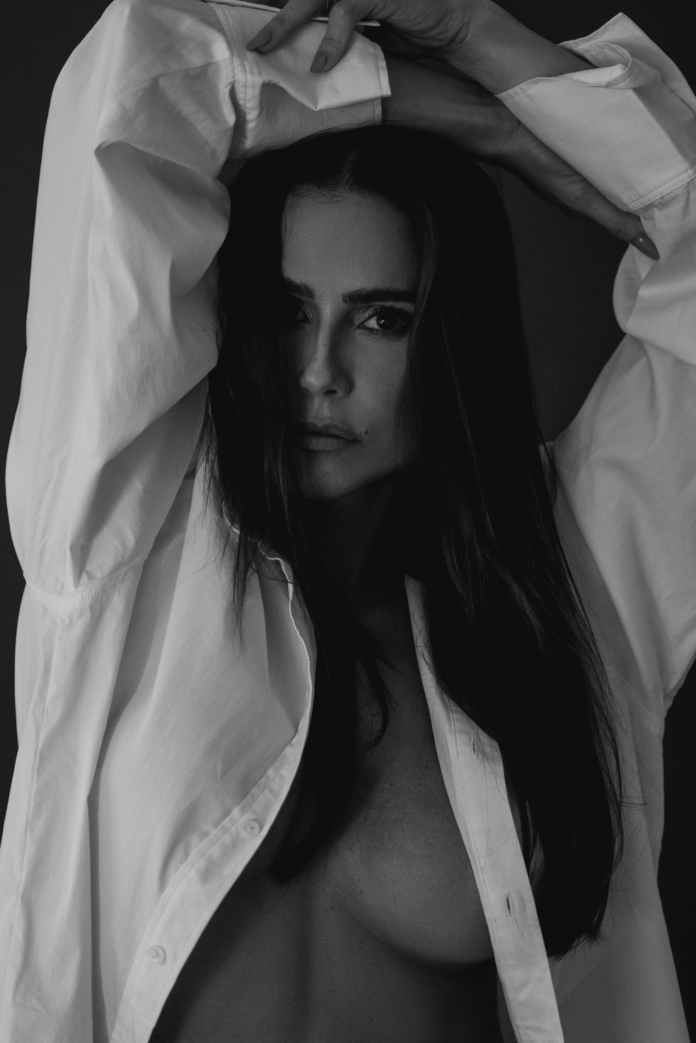 A luz suave do fim de tarde entrava pelas frestas da janela, tocando sua pele como um segredo. Diante do espelho, ela se movia com uma calma provocante, como quem conhece bem o poder de cada gesto.