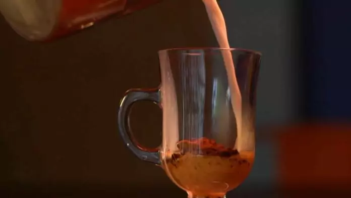 Imagem de café solúvel sendo preparado com leite.